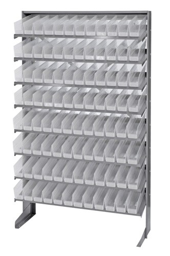 Single Sided Pick Rack with 96- QSB100CL Clear Plastic Storage Bins
