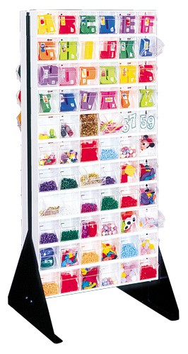 48"H, Double Sided Clear Tip Out Tilt Bin Floor Stand with 22 QTB306 bins.