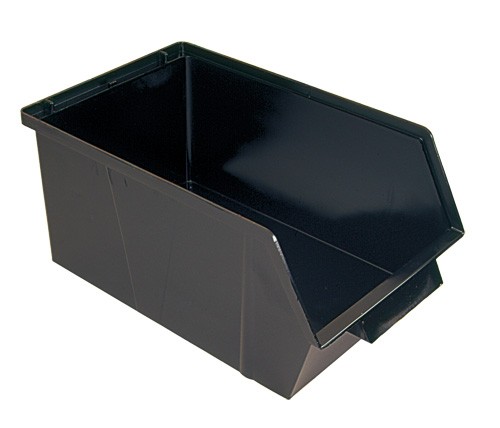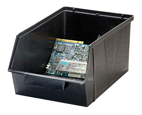 Protect your electronic components from typical electromagnetic interference (EMI), electrostatic or induced fields with these molded, carbon-filled, copolymer polypropylene plastic bins. Surface resistivity is less than 10(5) Ohms-per square. Easy access to stored items with hopper front bin and label holder provides fast identification. The conductive material provides a barrier which these fields cannot penetrate and prevents the build-up of electrostatic charge. Bins are permanently conductive and are unaffected by washing with normal cleaners. Be sure all units are properly grounded according to your use. Color is Black.