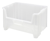 Multipurpose, wide open hopper front provides easy access for large part storage. Ideal for multiple applications in recycling, storing parts and components. This bin will stack up to 6 bins high creating a sturdy, tall storage system. Bins are injection molded from high density polypropylene, easy to clean, resist corrosion and are impervious to most chemicals. Large label holder allows for quick identification. Optional clear window increases storage capacity and allows for quick identification of parts. Six 1/4" drill hole pattern on bottom of bin allow for easy hole insertion for drainage and air circulation.