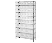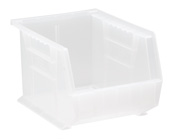 Organize your inventory with these strong bins, manufactured of FDA approved materials. Front, back and side grips for easy handling. Built-in rear hanger allows bins to hang from louvered panels or rails. Optional clear injection molded crystal styrene window increases bin capacity and provides quick view of bin contents. Dividers maximize flexibility and keep contents organized. Wide stacking ledge and anti-slide lock keep stacked bins steady and prevent forward shifting. Water, rust, and corrosion proof. Easily cleaned with soap and water and impervious to most chemicals. Large molded front label slots for ID labels. Autoclavable up to 250°F and resistant to extreme cold. Guaranteed not to break or crack under normal load conditions. Available in Clear.