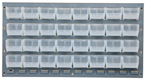36" x 19" Gray Louvered Panel with 32 QUS210 Clear Bins