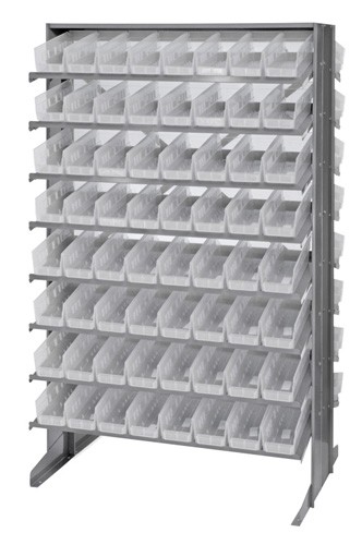 Double Sided Pick Rack with 128- QSB101CL Clear Plastic Storage Bins (Mobile Kit sold separately)