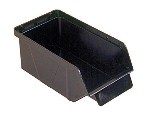 Protect your electronic components from typical electromagnetic interference (EMI), electrostatic or induced fields with these molded, carbon-filled, copolymer polypropylene plastic bins. Surface resistivity is less than 10(5) Ohms-per square. Easy access to stored items with hopper front bin and label holder provides fast identification. The conductive material provides a barrier which these fields cannot penetrate and prevents the build-up of electrostatic charge. Bins are permanently conductive and are unaffected by washing with normal cleaners. Be sure all units are properly grounded according to your use. Color is Black.