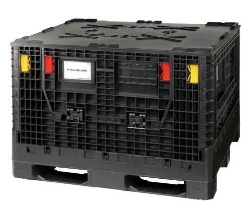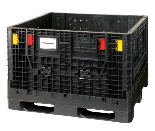 Collapsible bulk box provides a practical approach to large volume or large part material handling, storage and transport. Used for heavy loads, components and even food products, these reusable and returnable collapsible containers allow you to ship, handle, pick, store and distribute your products while increasing productivity and profitability. Collapsible bulk box comes in a standard pallet size footprint measuring 48"L x 45"W. It can be collapsed down to a fraction of its full height in seconds. Bulk containers stack perfectly loaded or when folded down to minimize storage space. They are designed to make the shipping of your products faster, safer and less costly while providing greater protection. Two access drop doors are able to lie flush against the container allowing easy loading and unloading. Manufactured from High Density Polyethylene, this tough container provides superior protection for products while being stored or in transit. Welded base provides greater strength while the reinforced fork openings provide easy lifting. Can withstand temperatures between -20
