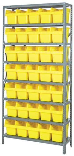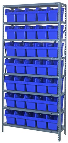 12" x 36" x 75", 8-Shelf Steel Shelving Unit with 35 QSB802 Plastic Storage Bins