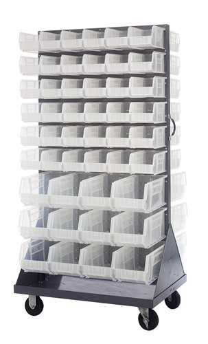 36" x 72" Mobile, Double Sided Louvered Rack with 72- QUS230CL and 24- QUS240CL Garage Storage Clear Plastic Bins