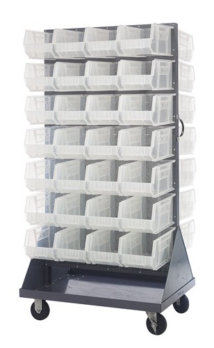36" x 72" Mobile, Double Sided Louvered Rack with 56- QUS240CL Garage Storage Clear Plastic Bins