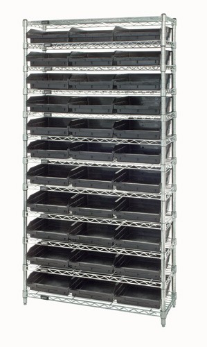 12" x 36" x 74" 12-Shelf Conductive Wire Shelving Unit with 33 QSB109CO ESD Bins